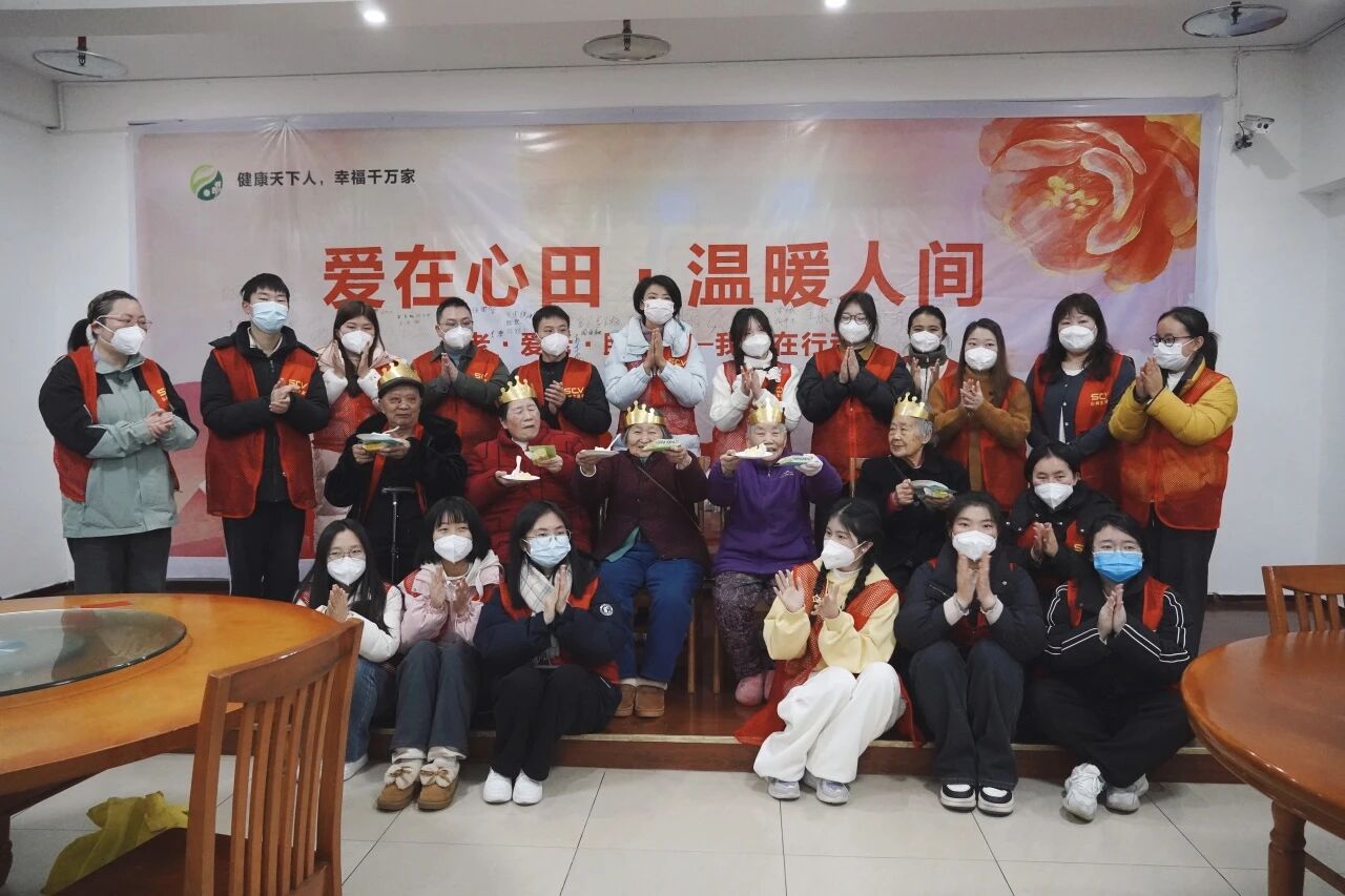 12月14日上午,18名山城志愿者走进渝中区竹园老人福利院,开展关爱陪伴,为福利院内的寿星长者送上生日关怀和祝福。