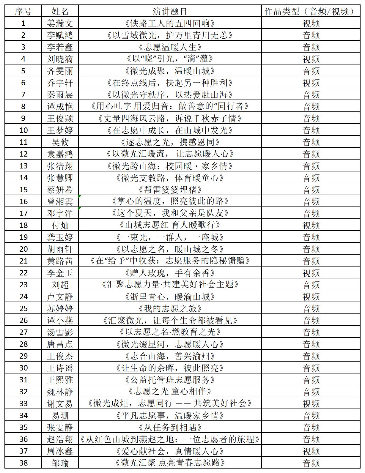 经过筛查评选,现公布比赛入选名单如下: