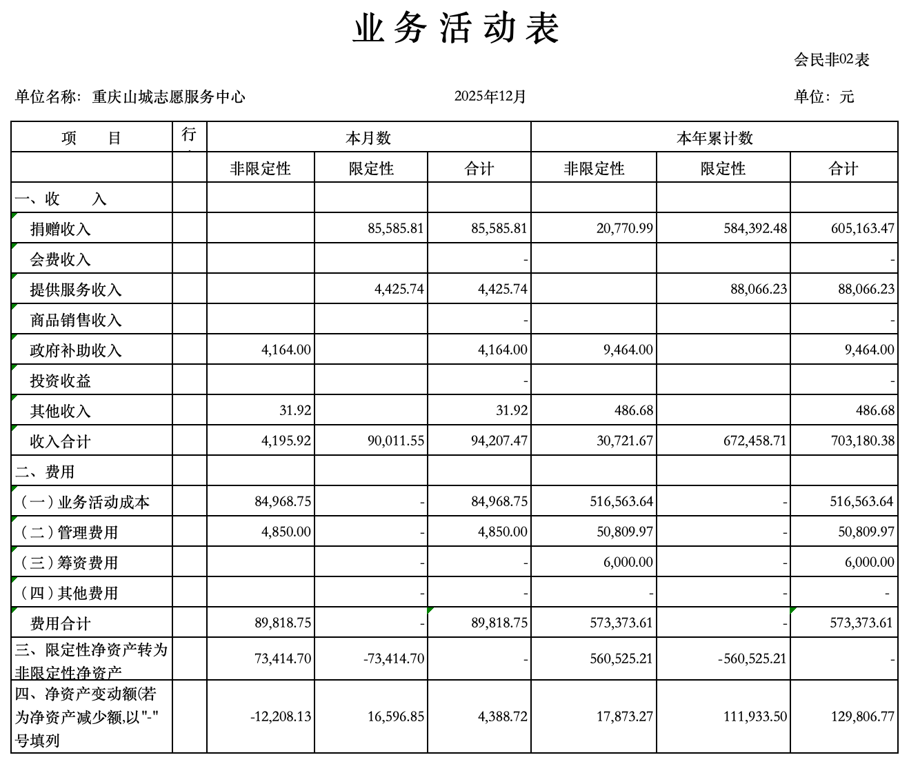 2025年12月财务公示